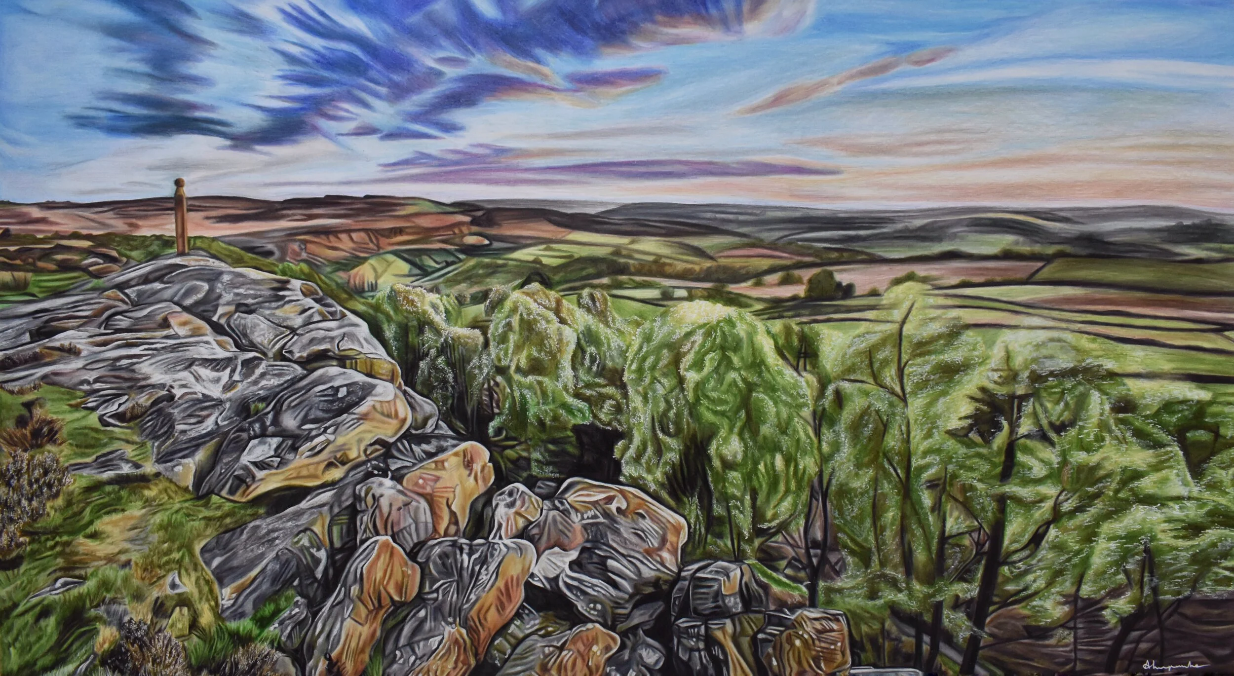 'Curbar Edge, Derbyshire' - Coloured Pencil, 45 x 85cm