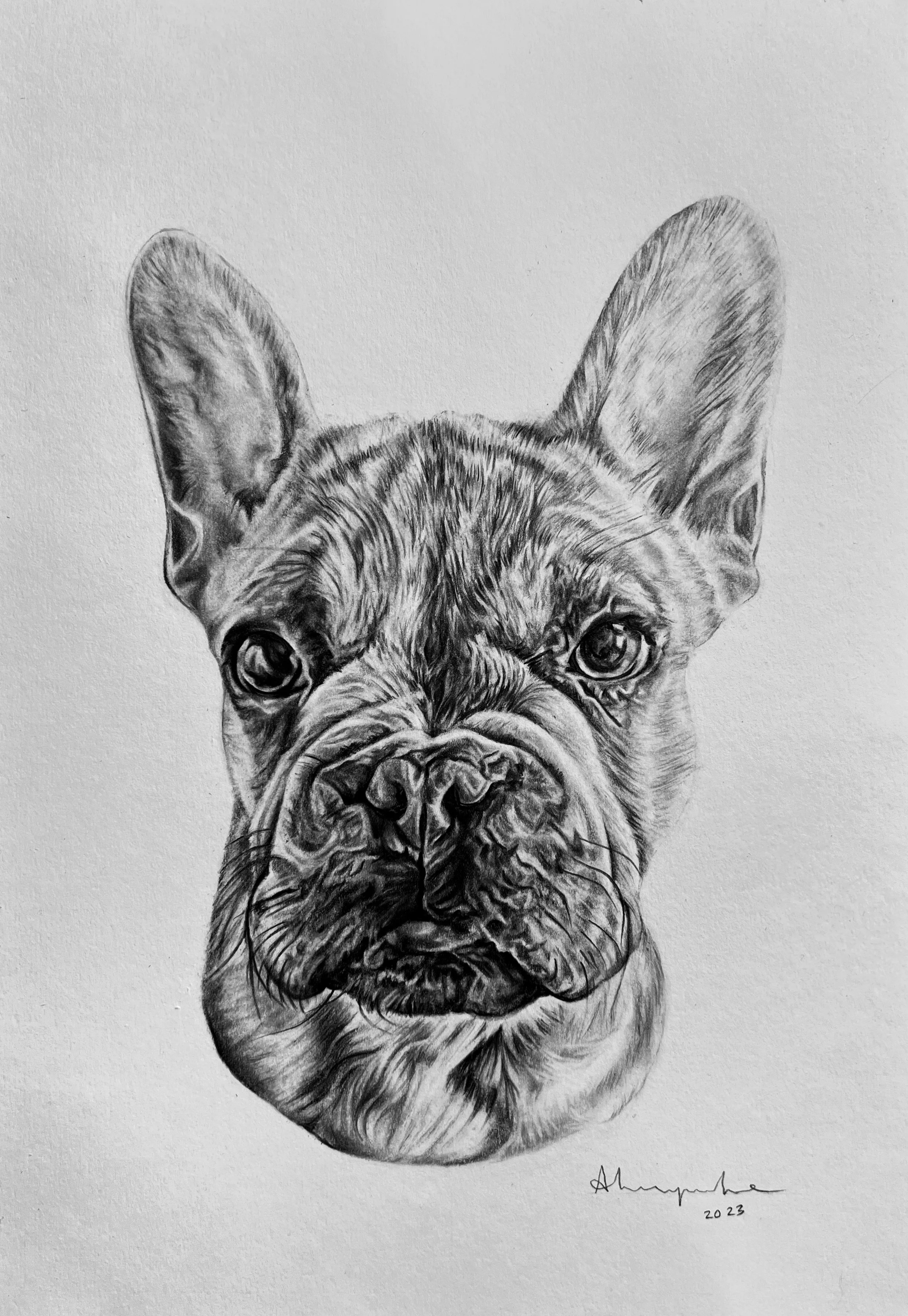 'Rocky, French Bulldog' - Pencil, 20 x 30cm